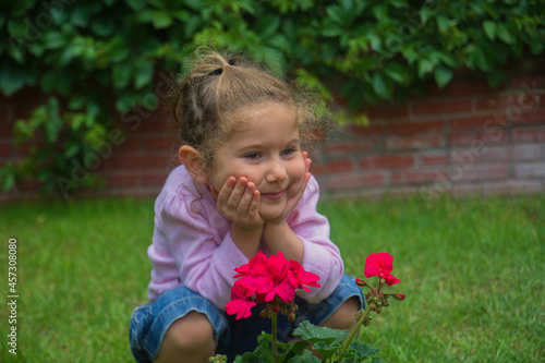 girl, red, geranium, adorable, agriculture, background, backyard, blooming, botany, bush, can, care, caucasian, children, daughter, equipment, family, farm, farmer, flower, garden, gardening, green, grow, healthy, hobby, home, joyful, children, landscaping, laugh, laughter, leisure, lifestyle, little, maintenance, nature, organic, outdoors, outside, person, plant, portrait, primary, school, space, summer, tool, urban
