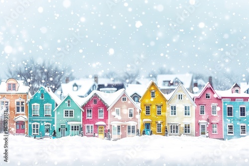house, home, building, estate, architecture, roof, symbol, concept, sale, apartment, residential, bungalow, housing, design, small, toy, snow, winter, snowy, snowdrift, village, town, christmas, background, beautiful, colourful, many, several, snowflake, blue, red, yellow, fairy tale, cartoon, fairy tale, fantasy, copy space, landscape, celebration, holiday, season, card, nature, decoration, scene, cold, snowman