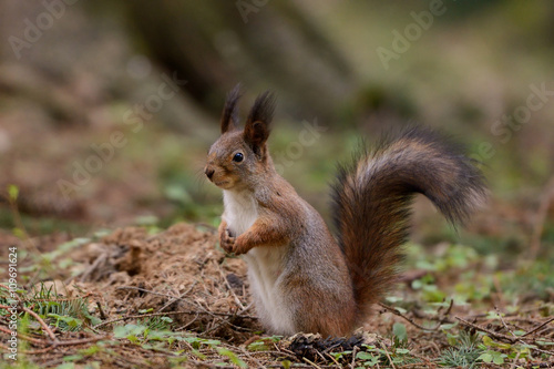 animal, balance, critter, cute, eating, forest, grove, mammal, nature, park, pest, rodent, squirrel, tail, wild, wildlife, green, grass, brown, autumn, freedom, hot, sunny, warm, fur, fell, hazelnut, natural, portrait, plant, surprised, lovely, high-coloured, orange, red