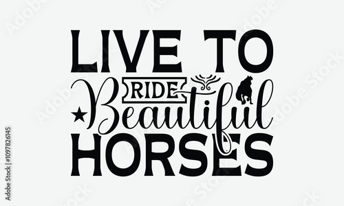 Live To Ride Beautiful Horses - Horses T-Shirt Design, Illustration Prints And Bags, Posters, Cards, EPS, Silhouette Cameo, Files For Cutting.