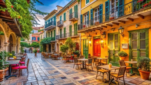 Lively caf? in Nafplio with vibrant street life and old architecture, caf?, Nafplio, relax, warmth, sun