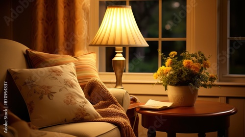 living, incandescent, lighting, illustration, cosy, room, illuminated, soft, warm, glow, vintage, table, lamp, soothing, ambience, gentle, shadow, wall, high, intricate, detail, decor, touch, nostalgia, relaxation, honed, spot, curl, book, chilly, evening