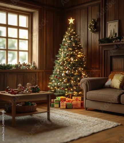 interior, room, christmas, tree, present, gift, wrapped, enclosed, family, holiday, season, winter, celebration, home, window, house, furniture, fireplace, living, table, luxury, design, decoration, bedchamber, door, chair, decor, wood, architecture, classic, indoor, sofa, light, lamp, apartment, pillow, comfortable, hotel
