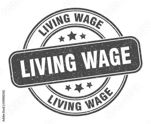 living, wage, stamp, label, seal, signs, tags, badge, black, circle, grey, grey, grunge, insignia, isolated, round, rubber stamp, textured, vector, vignette, vintage, white background