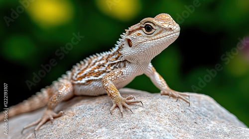 lizard resting on sunlit rock, showcasing its intricate patterns and colors