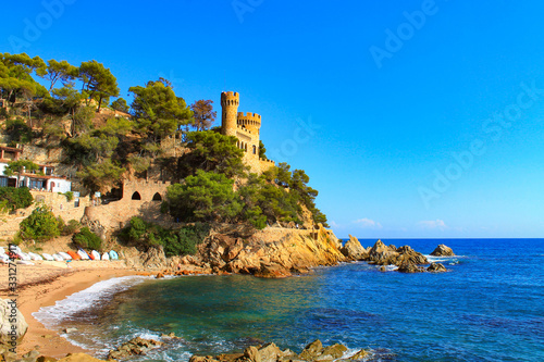 Lloret de Mar Castle and the beach on a sunny day