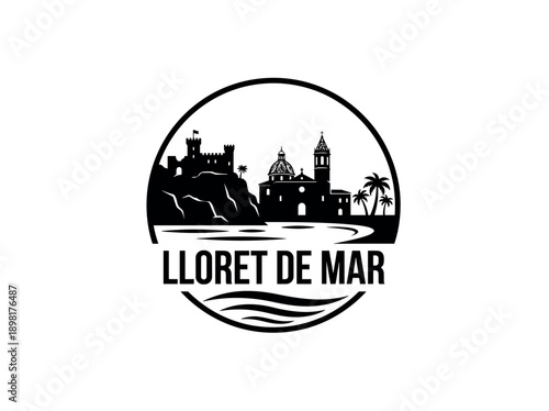 Lloret de Mar city of Spain stylized black and white skyline logo with iconic architecture