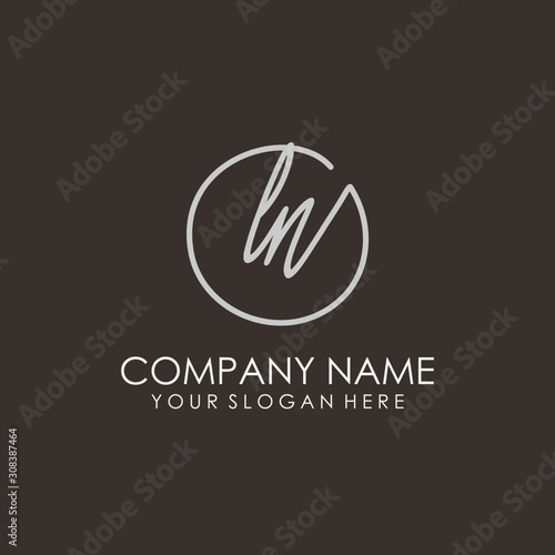 LN initials signature logo. Handwritten vector logo template connected to a circle. Hand drawn Calligraphy lettering Vector illustration.