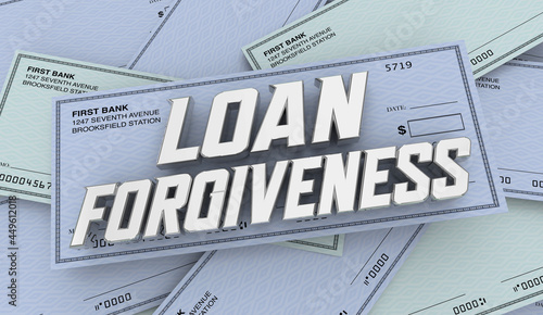 forgive, forgiveness, loan, debt, cancel, cancelled, check, cancellation, relief, help, account, apply, application, student, assistance, balance, reduce, reduction, financial, finance, liability, liable, payment, paid, off, repay, education, bankrupt, bankruptcy, obligation, money, bank, credit, word, background, three-dimensional, illustration