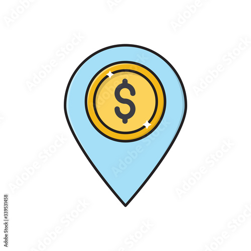 dollar, location, bank, map, currency, mark, cyberspace, travel, position, illustration, service, marker, money, pointer, direction, graphic, place, design, web, pin, signs, symbol, circle, transportation, people, atm, vacation, navigation, point, tour tourism