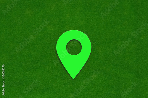 Location sign on a green background. Navigation, location