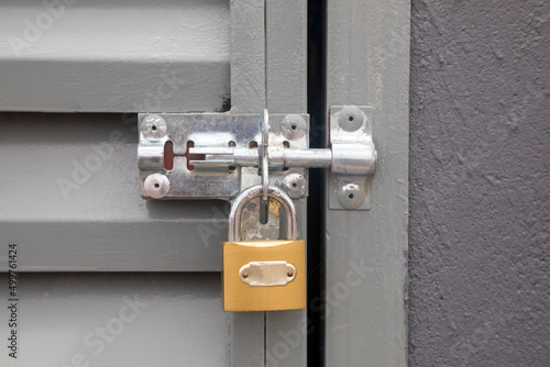 detail, front, locked, nobody, horizontal, metalwork, old-fashioned, doorway, linked, gold, hardware, guard, bronze, stainless, brass, strong, locker, gate, safe, wall, door, closed, metallic, metal, bolt, close, security, secure, safety, lock, safeguard, steel, privacy, protection, padlock, object, iron, unlock, private, secret