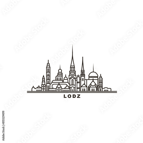 Lodz cityscape skyline city panorama vector flat modern logo icon. Poland town emblem idea with landmarks and building silhouettes. Isolated thin line black graphic