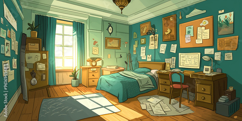 Lofi Bedroom Cartoon Style, 2D Cartoon Room
