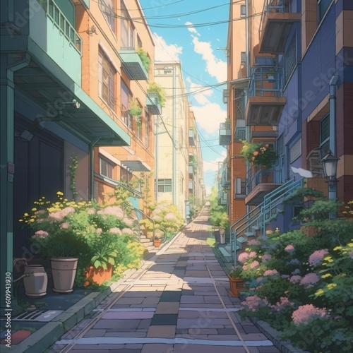 LOFI street illustration, colorful anime manga style wallpaper background design, Generative AI