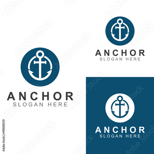 Logo and anchor symbol design vector illustration template.