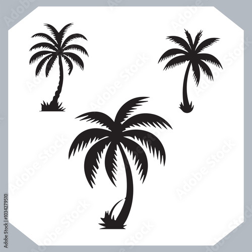 Logotype black simple palm tree vector silhouettes, Palm Trees Silhouette, Coconut Tree Silhouette on white background