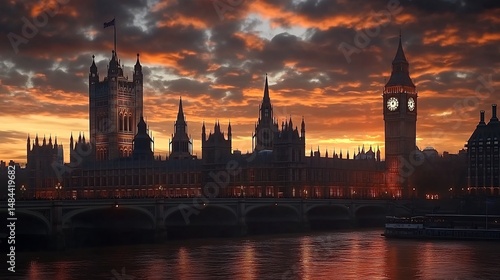 london, parliament, sunset, silhouette, river thames, river, city landscape, architecture, gothic, dramatic, vibrant, sky, cloud, orange, red, twilight, evening, night, bridge, building, historic, landmark, travel, photo, scenic, beautiful, view, image, picture, photo, art, artwork, composition, light, colours, british, england, britain, tour tourism, stock