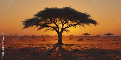 Lone Acacia Tree at Desert Sunset