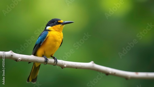 Lone, brightly colored bird on a white branch, tree, fauna, unique
