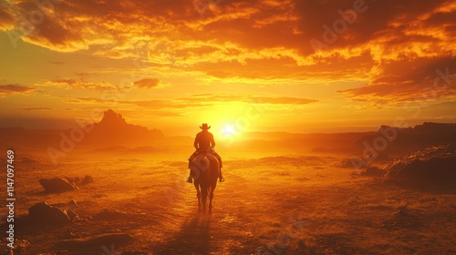 sunset, desert, cowboy, horse, riding, silhouette, sun, sky, cloud, landscape, western, rider, dust, horizon, alone, journey, travel, adventure, freedom, wild, nature, outdoors, scenic, beautiful, picturesque, huge, expansive, gold, orange, light, shadow, heat, path, way, rock, mountain, plain, solitary, remote, calm, peaceful, tranquil, serene