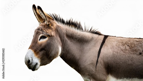 Lone Donkey Against a Transparent Canvas Striking Portrait of a Solitary Mammal with Textured Coat and Expressive Eyes against an Ethereal Background, Perfect for Digital Art, Home Decor, or
