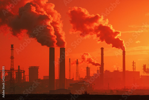 pollution, contemplation, industrial, destruction, smokestack, sunset, atmosphere, environment, figure, male, adult, standing, ash, warm tones, city landscape, silhouette, despair, isolation, awareness, orange, red, shadow, hopelessness, urban, toxic, landscape, ruin, 1, sorrowful, loneliness, bleakness, future, warning, symbolism, reviewing, industry, climate, energy, reckoning, humanity, chain, survival, melancholy