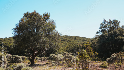 tree, sun, hill, sky, blue, lone, green, bright, view, clear, grass, field, land, wide, air, leaf, calm, peace, still, day, scene, lush, spot, warm, pure, life, peak, bush, flora, dirtied, root, bark, stem, wood, tall, open, free, crisp, high, space, rest, rise, indonesia, asia