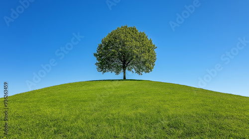 tree, sky, hill, green, blue, landscape, nature, grass, meadow, field, summer, spring, environment, sunny, day, bright, natural, plant, growth, beauty, season, idylli, peaceful, scenery, horizon, lone, single, solitary, vibrant, colours, copy space, background, wallpaper, countryside, rural, agriculture, farm, pasture, grazing, farm animal, ecology, sustainability, climate change, global warming, oxygen, photosynthesis, life
