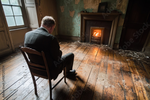 loneliness, sorrowful, solitude, warmth, fire, room, memory, isolation, calmness, moment, quiet, contemplation, escape, mood, peaceful, atmosphere, glow, photo, setting, expression, floor, human, shadow, calm, comfort, retreat, scene, emotion, ambience, chair, storytelling, stillness, history, depth, longing, flicker, light, vintage, character, design, texture, wood, colours, abandoned, environment, architecture