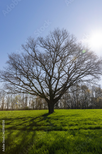 nature, field, oak, tree, old, sky, lonely, without, foliage, sunny, weather, green, grass, leaf, season, landscape, land, environment, outdoors, winter, spring, wood, naked, leafless, agriculture, natural, beautiful, blue, trunk, background, bright, scenic, park, tree branch, oak tree, ecology, day, silhouette, forest, plant, concept, eco, pasture, protection