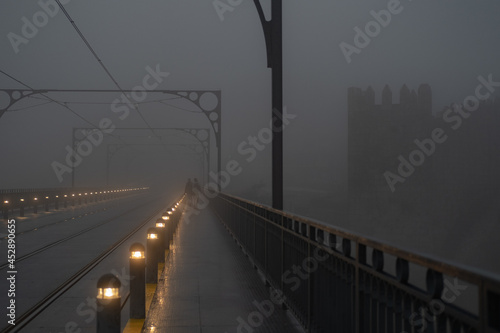 bridge, rain, sad, lonely, fog, art, light, man, alone, oporto, walk, castle, beauty, human, sky, business, travel, road, architecture, design, cloud, interior, aeroplane, three-dimensional, building, window, empty, aircraft, illustration, steel, plane, city, highway, nature, metal, time, light, car, traffic, transportation, street