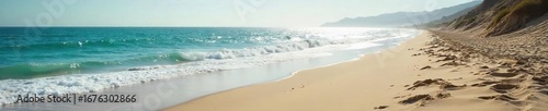 Lonely shoreline, waves crashing against deserted sand, conveying a sense of melancholic beauty The vastness of the ocean amplifies the feeling of solitude and introspection , beach, peaceful