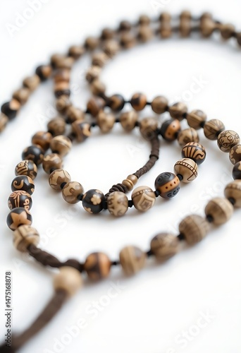 buddhist, beaded, necklace, wooden, prayer, bead, craftsmanship, texture, white, background, buddhism, jewellery, accessory, spiritual, meditation, worship, ritual, infuriated, monastic, monastery, temple, pilgrimage, devotion, faith, ritual, ceremonial, ornament