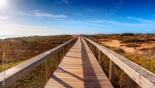 bridge, wooden, path, wood, nature, boardwalk, beach, sky, landscape, paseo, water, blue, stair, lake, grass, summer, way, footpath, coast, pier, road, pathway, footbridge, park, walk