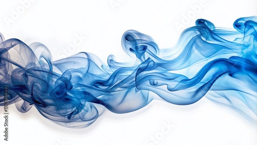 Long Exposure of Blue and White Smoke Isolated on a White Background, Capturing the Ethereal Flow and Movement of Smoke in Artistic Abstract Photography