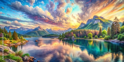 Long Exposure Scenic Beauty: Detailed Sketch, Panoramic Landscape, Nature Art