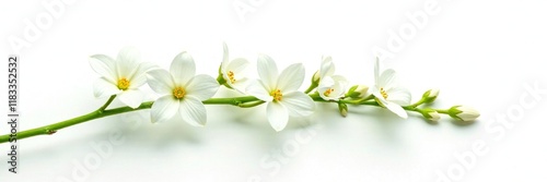 Long green stem with delicate white flowers isolated on a white background, Anthoxanthum odoratum, white, herbaceous