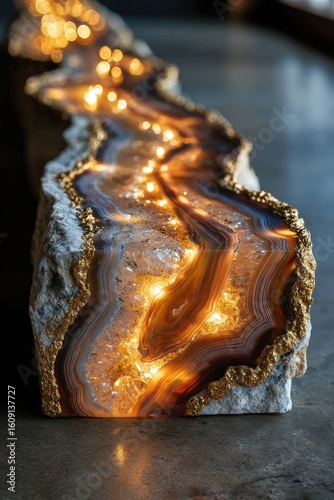 agate, illuminated, slab, gold, light, crystal, natural, stone, decorative, modern, art, design, luxury, piece, texture, organic, polished, gem, elegant, warm, amber, brown, white, clear, glowing, long, interior, accent, home, display, unique, statement, contemporary
