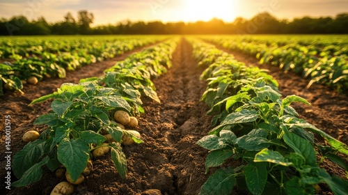 agriculture, field, crop, farming, landscape, cultivated, plantation, row, line, pattern, rural, countryside, farmland, grow, growing, plant, aerial, view, drone, shot, sunset, evening, light, sun, cloud, sky, nature, outdoors, scenic, summer, spring, green, brown, environment, food, produce, harvest, potato, beautiful, rolling, hill, absence, aerial view, asparagus, color image, district, europa, farm