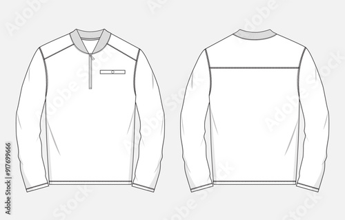 Long sleeve with pocket t shirt technical drawing fashion flat sketch vector illustration template front and back views.