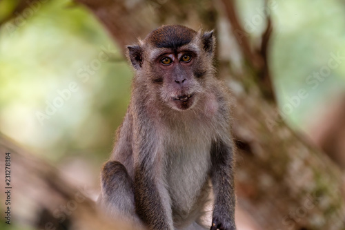 macaque, long, tailed, monkey, forest, cute, nature, animal, wild, wildlife, tree, asia, baby, primate, young, juvenile, jungle, face, bali, tropical, borneo, rainforest, sabah, sarawak, malaysia, indonesia, tail, crab, pest, sitting, ape, fur, monkey, travel, safari, hairy, grey, brown, naughty, family
