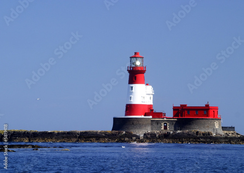 alert, beacon, blue, beam, caution, coast, coastline, forewarning, guard, guidance, lamp, lantern, light, lighthouse, navigation, island, land, rock, red, white, sea, sky, tower, warning, staple, gallery, optic, lens