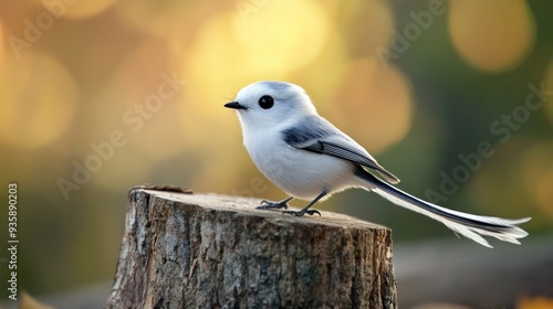 Long-tailed Tit Perched on Tree Stump
