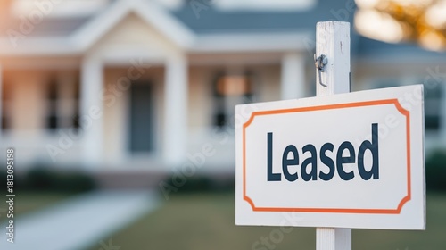 long-term rental investment, Leased Sign in Front of Modern Home Representing Rental Investment Opportunity