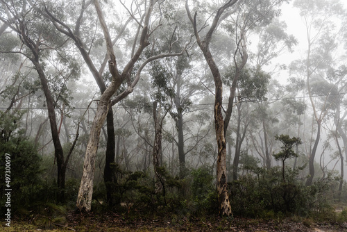 Looking through misty bushland