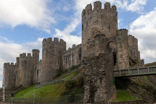 Looking up at Conwy Castle