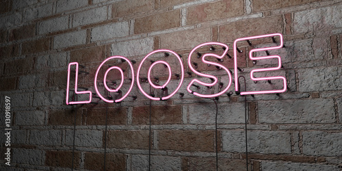 LOOSE - Glowing Neon Sign on stonework wall - 3D rendered royalty free stock illustration. Can be used for online banner ads and direct mailers..