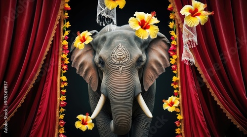 Lord Ganesha in the form of an elephant adorned with yellow hibiscus, a concept for Ganesh Chaturtha