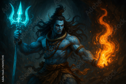 shiva, hindu, god, deity, spiritual, religion, powerful, trident, fire, destroyer, divine, worship, mythology, symbol, mystical, ancient, sacred, meditation, energy, art, illustration, india, creator, guardian, dynamic, cosmos
